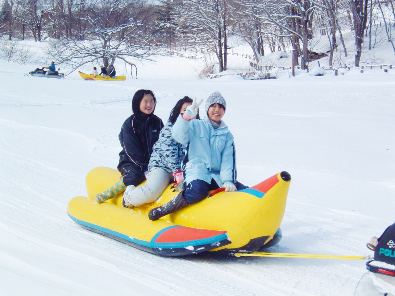 中学生以上が体験できる スノーモービル では、雪原を駆け抜ける爽快感を全身で味わえます。4歳から乗れる雪上バナナボートは家族そろってキャーッと盛り上がれる大人気アクティビティ。さらに、予約不要で気軽に楽しめる そり遊び は、小さな子どもが雪に慣れるのにもぴったりです。