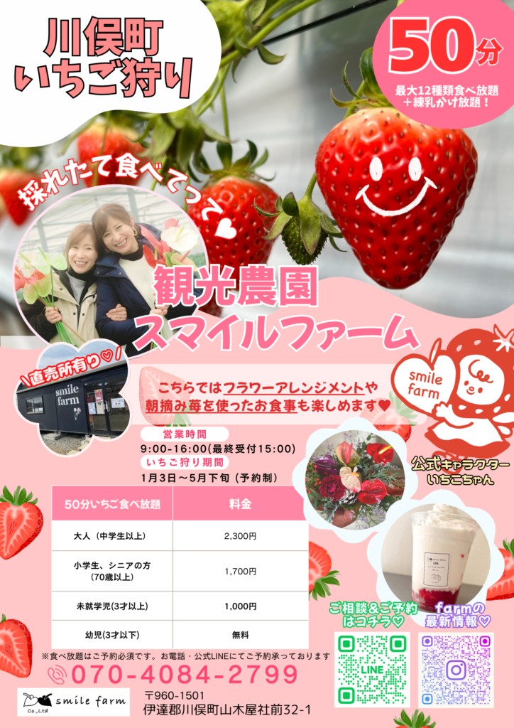川俣町で楽しめる、ファミリーに大人気の観光農園スマイルファーム で、春のいちご狩りを満喫しませんか?😊