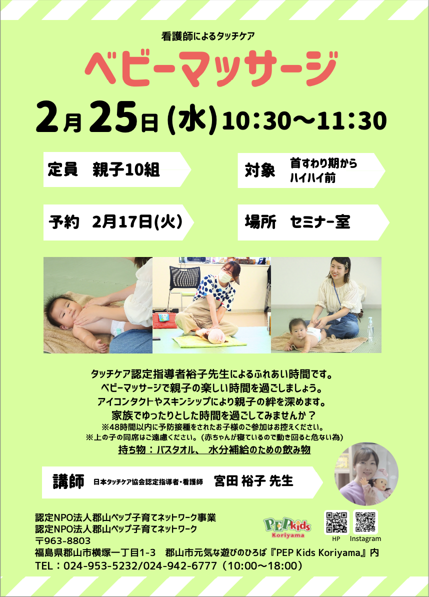 赤ちゃんと一緒に、心も体もほっとゆるむ「ベビーマッサージ親子体験」🌿