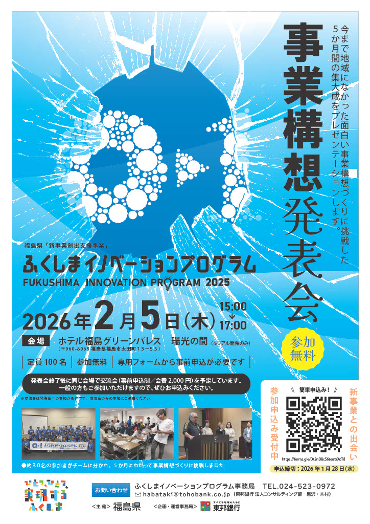 この度、2026年2月5日(木)に開催される「ふくしまイノベーションプログラム2025 事業構想発表会」において、当メディア「fureru」が紹介されることとなりましたのでお知らせいたします。